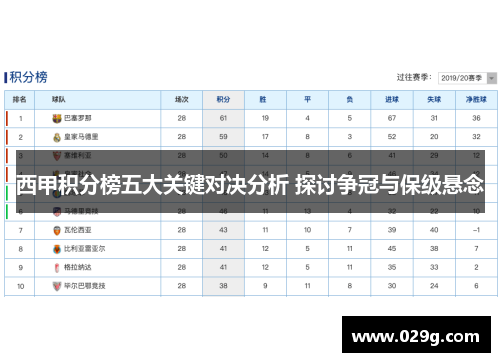 西甲积分榜五大关键对决分析 探讨争冠与保级悬念